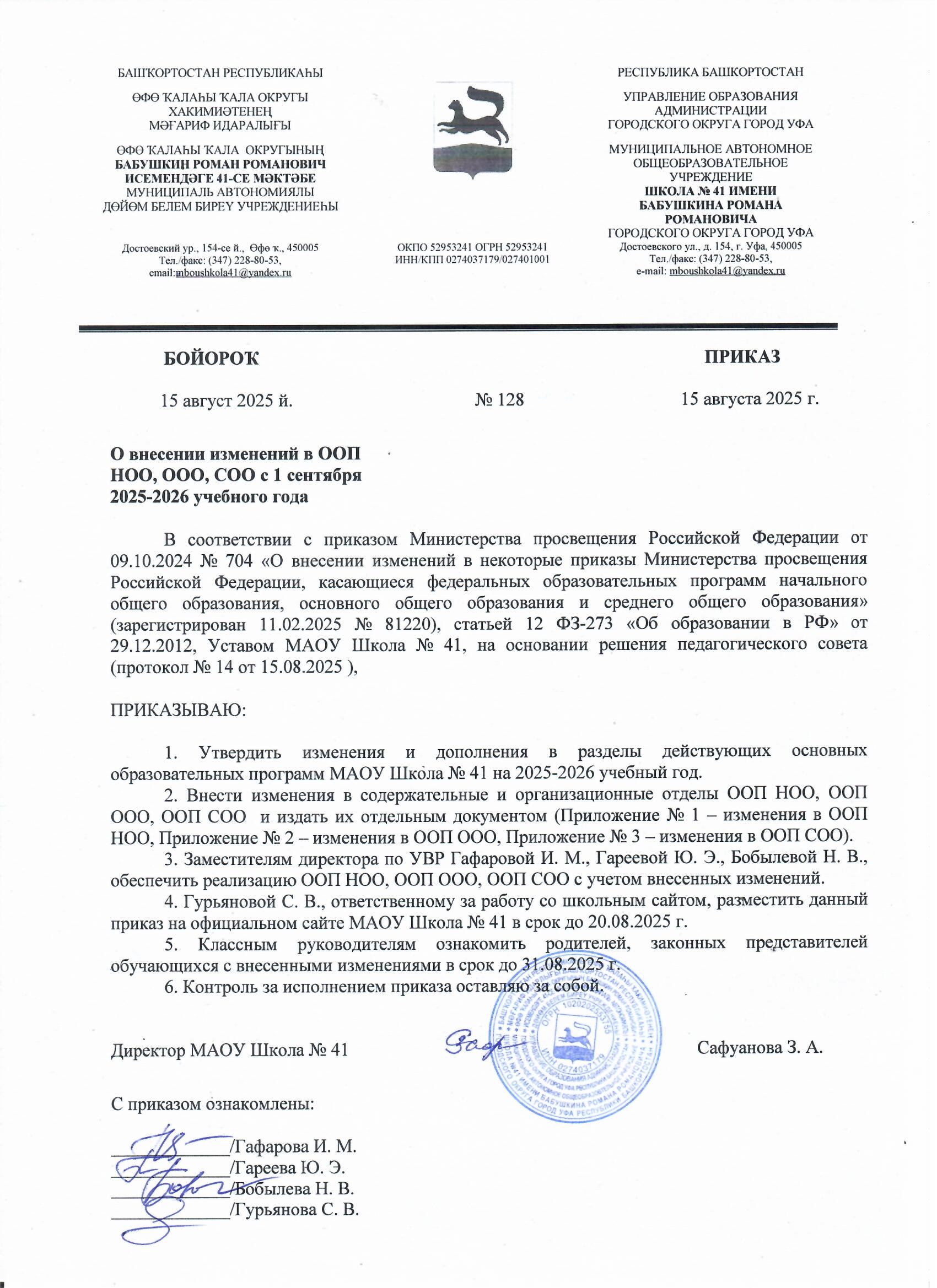 ОСНОВНАЯ ОБРАЗОВАТЕЛЬНАЯ ПРОГРАММА СРЕДНЕГО ОБЩЕГО ОБРАЗОВАНИЯ | Английский язык, Русский язык, Башкирский язык, Родной язык и литература, Математика, Физика, Физкультура, Химия, ОБЗР, Информатика, География, История, Обществознание, Биология, Литература. |